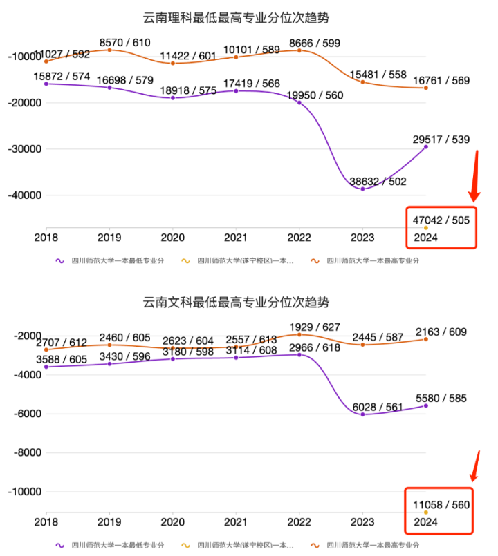 上图是川师大遂宁校区在云南2024年的专业录取分,最低投档线也是跌至一本线!而且也经历了征集!